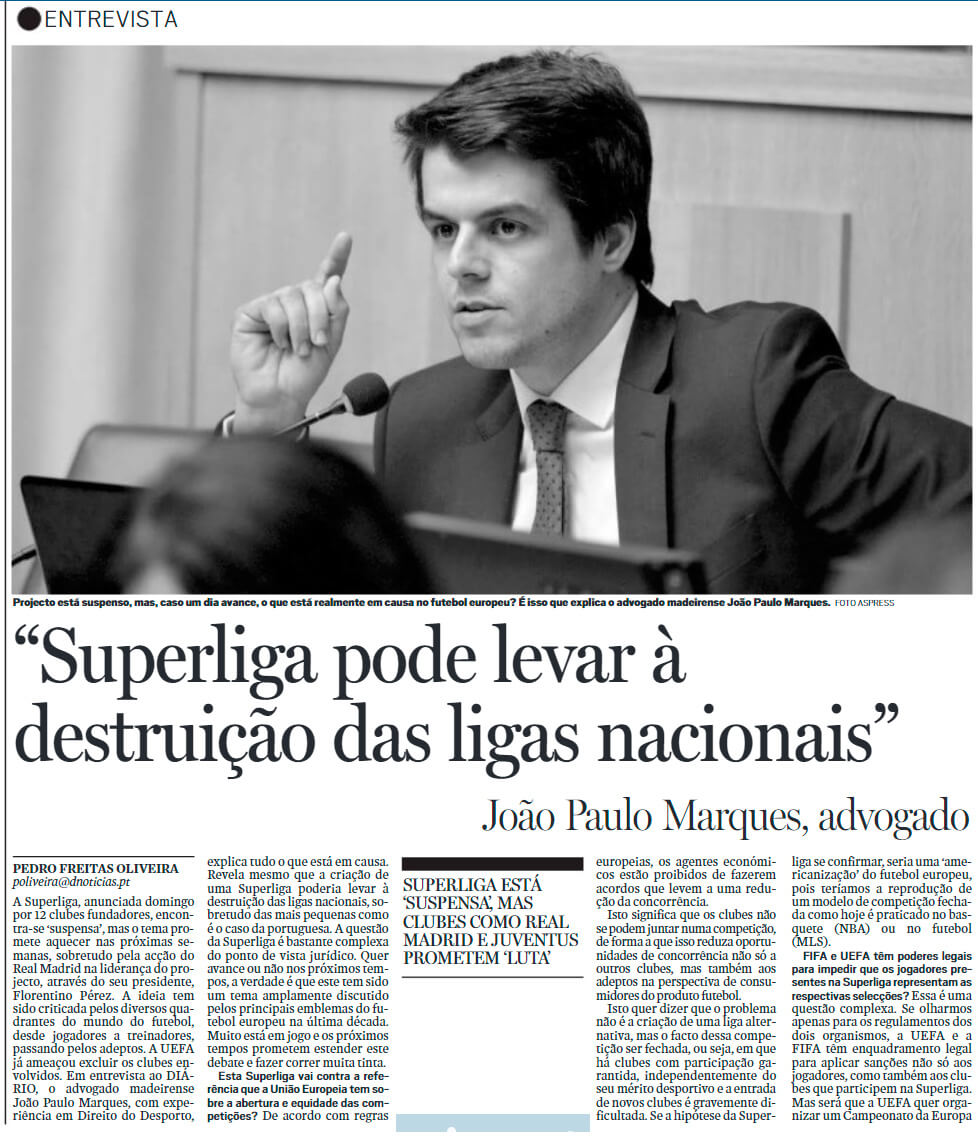 O advogado João Paulo Marques falou com o Diário de Notícias da Madeira sobre o recente caso da Superliga Europeia e o impacto que a mesma teria no futebol nacional.