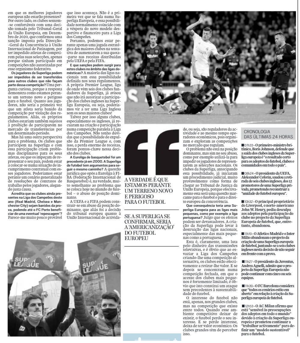 Em entrevista ao matutino madeirense, o advogado referiu que “Se a Superliga se confirmar seria a “americanização” do futebol europeu”.